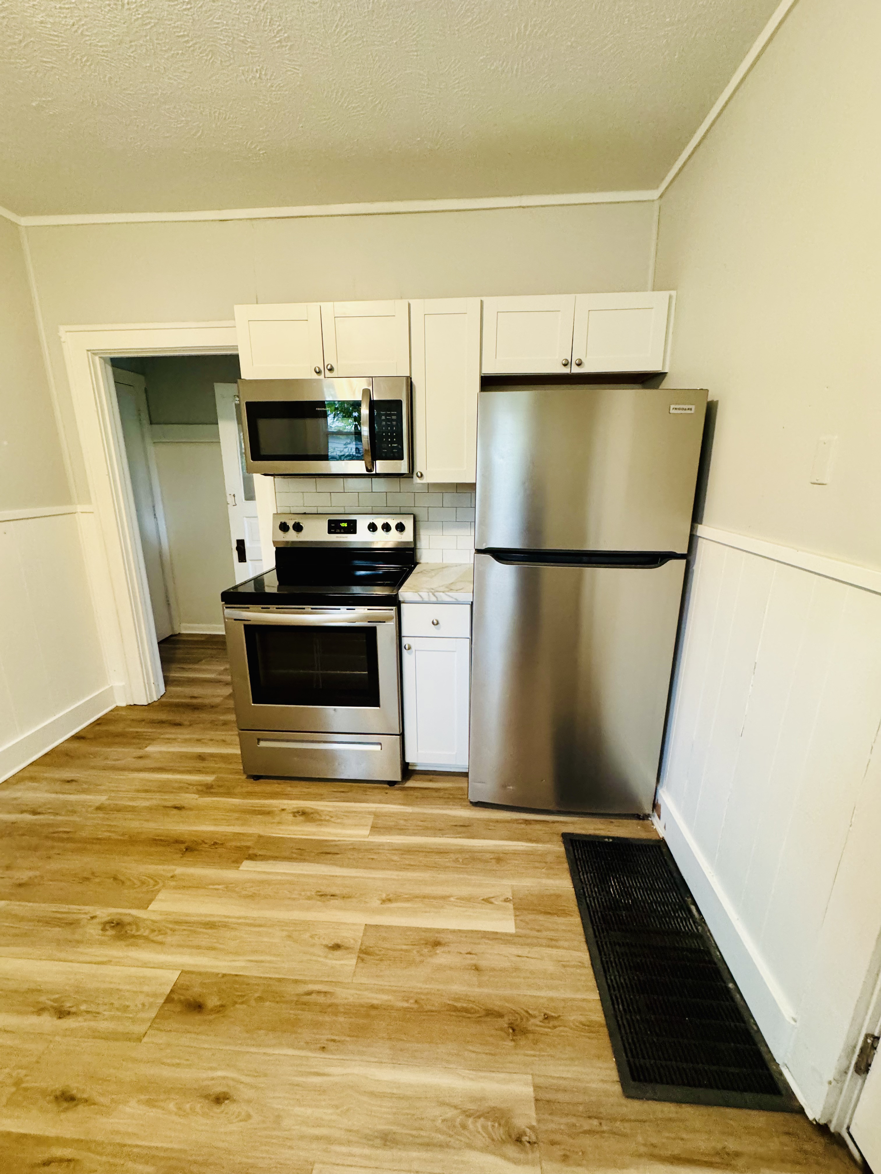 - Updated kitchen with modern appliances (refrigerator, stove/oven)