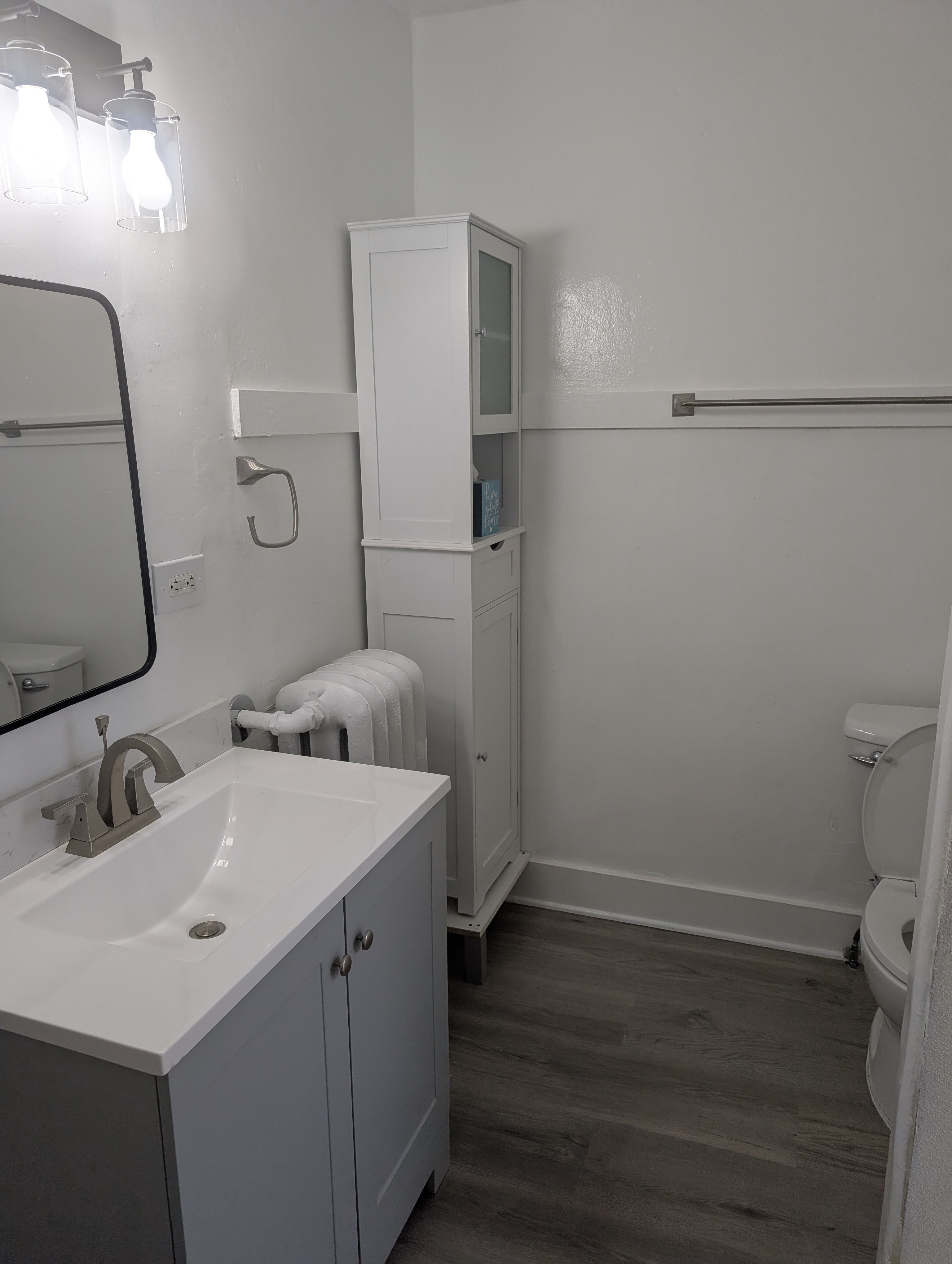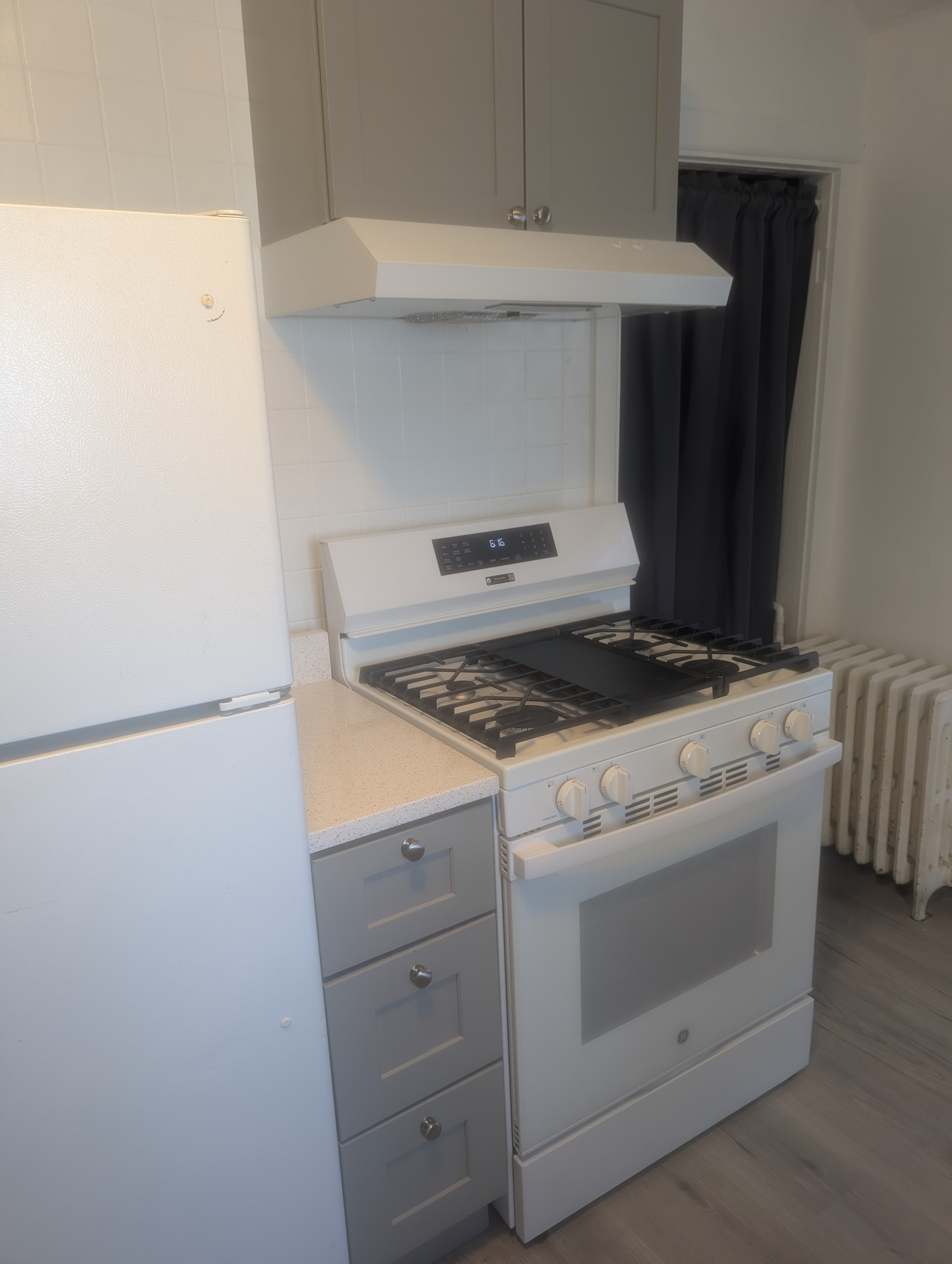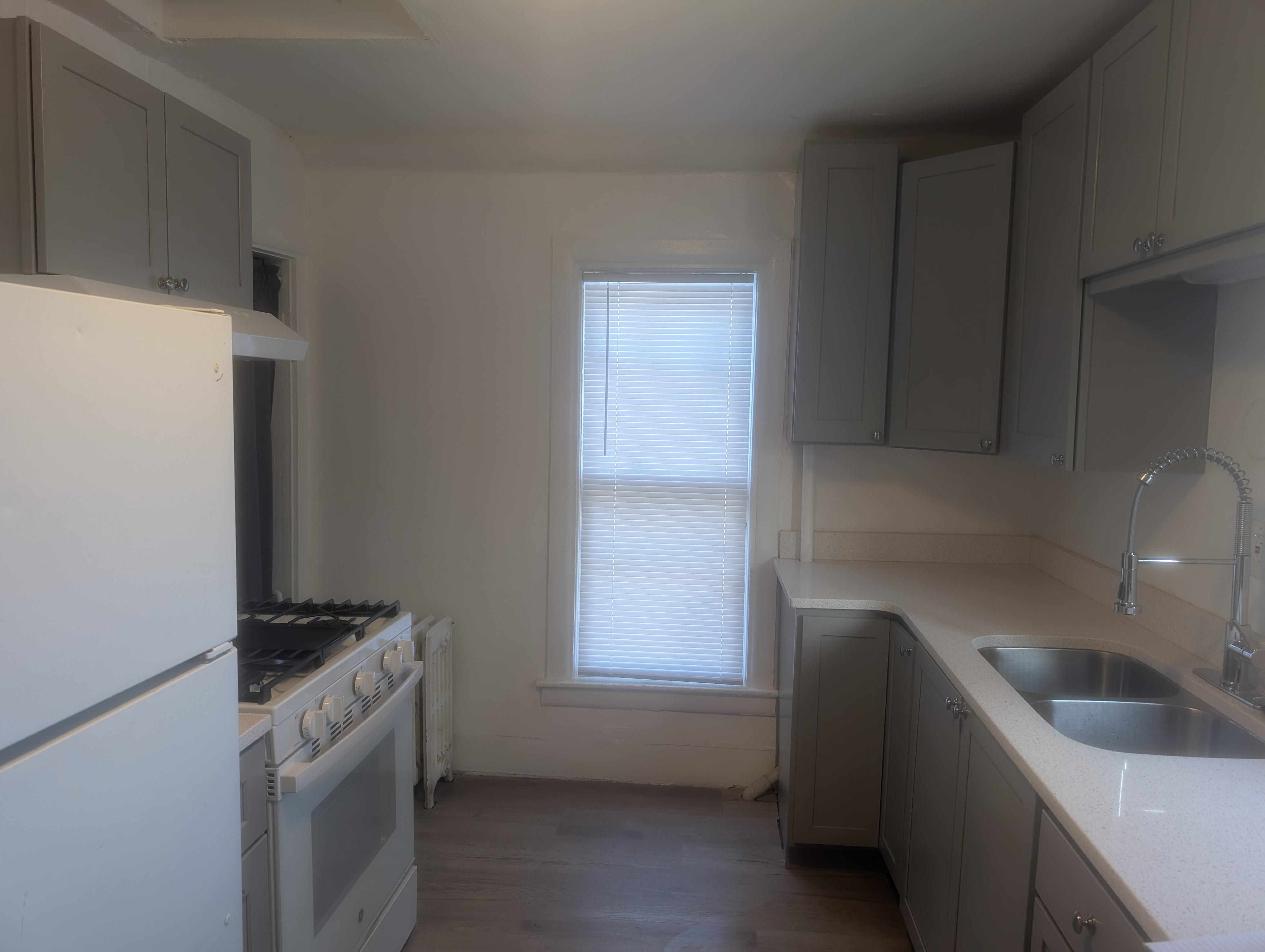 Newly updated upstairs unit boasts a fresh paint throughout, new carpet in bedrooms, hardwood floor in living room and dining room and a spacious balcony. Bathroom has new floor, sink/vanity, lighting and added storage. The beautifully updated kitchen has all new floor, pantry, cabinets, stove and quartz counters. There is also a beautiful built-in hutch for added storage with a marble counter.
